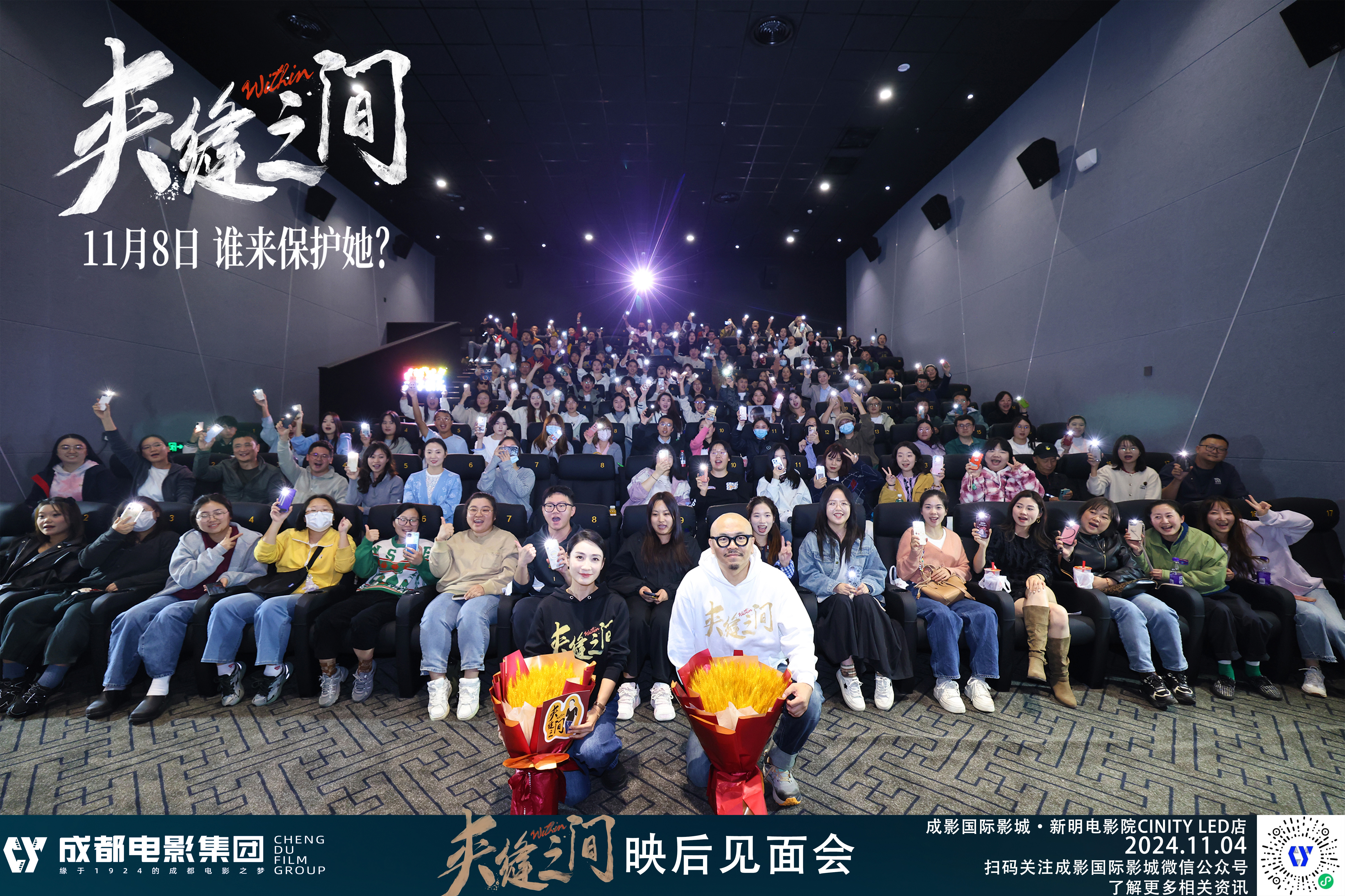 2024年11月4日晚,《夾縫之間》劇組主創(chuàng)導(dǎo)演/編?。汗舐?、監(jiān)制/制片人、主演:陶昕然一行到成影新明電影院進(jìn)行了映后路演活動(dòng)...
